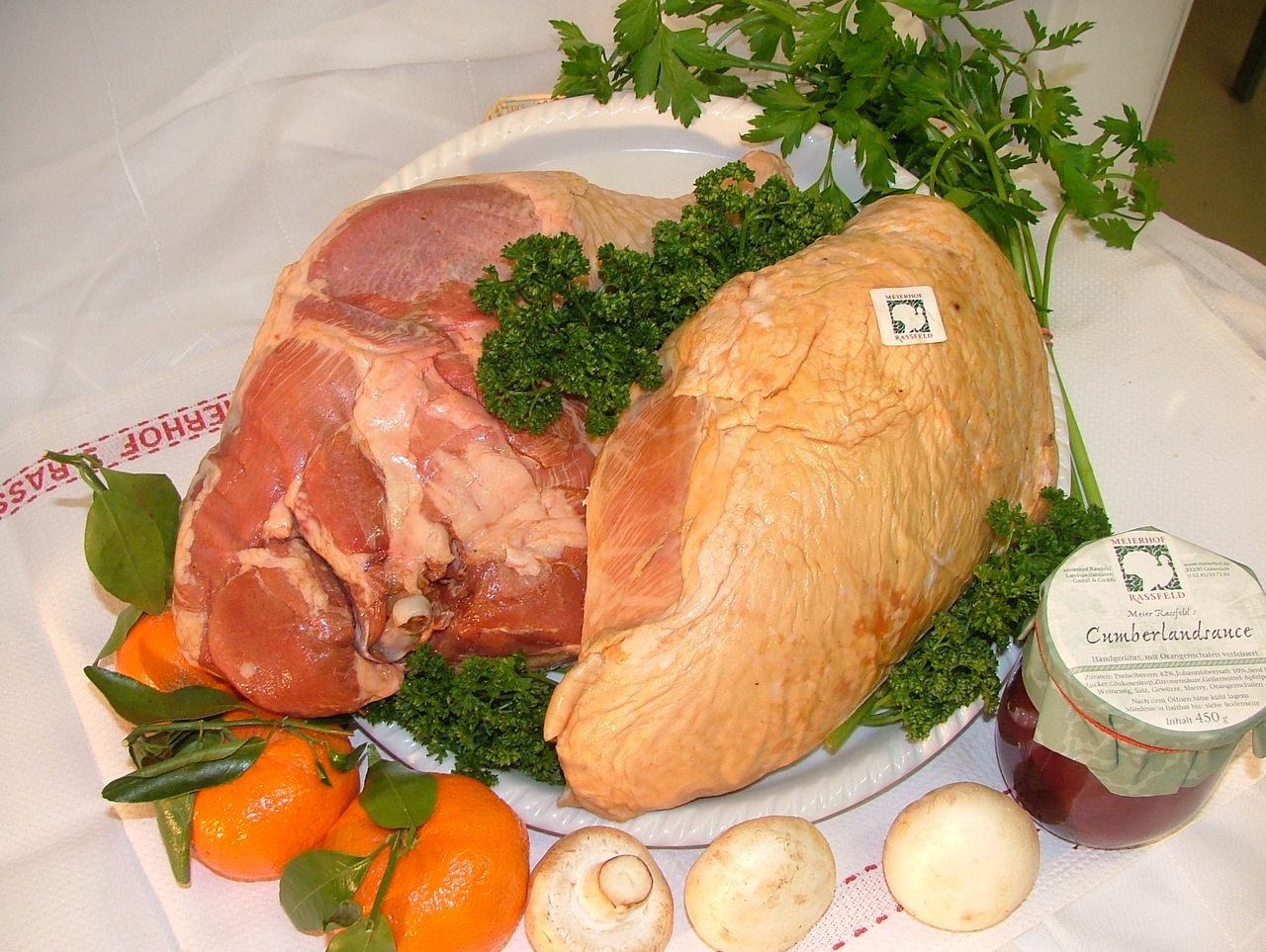Das feine Brustfleisch mit der süßen Note von Backobst, als Rollbraten gefüllt.