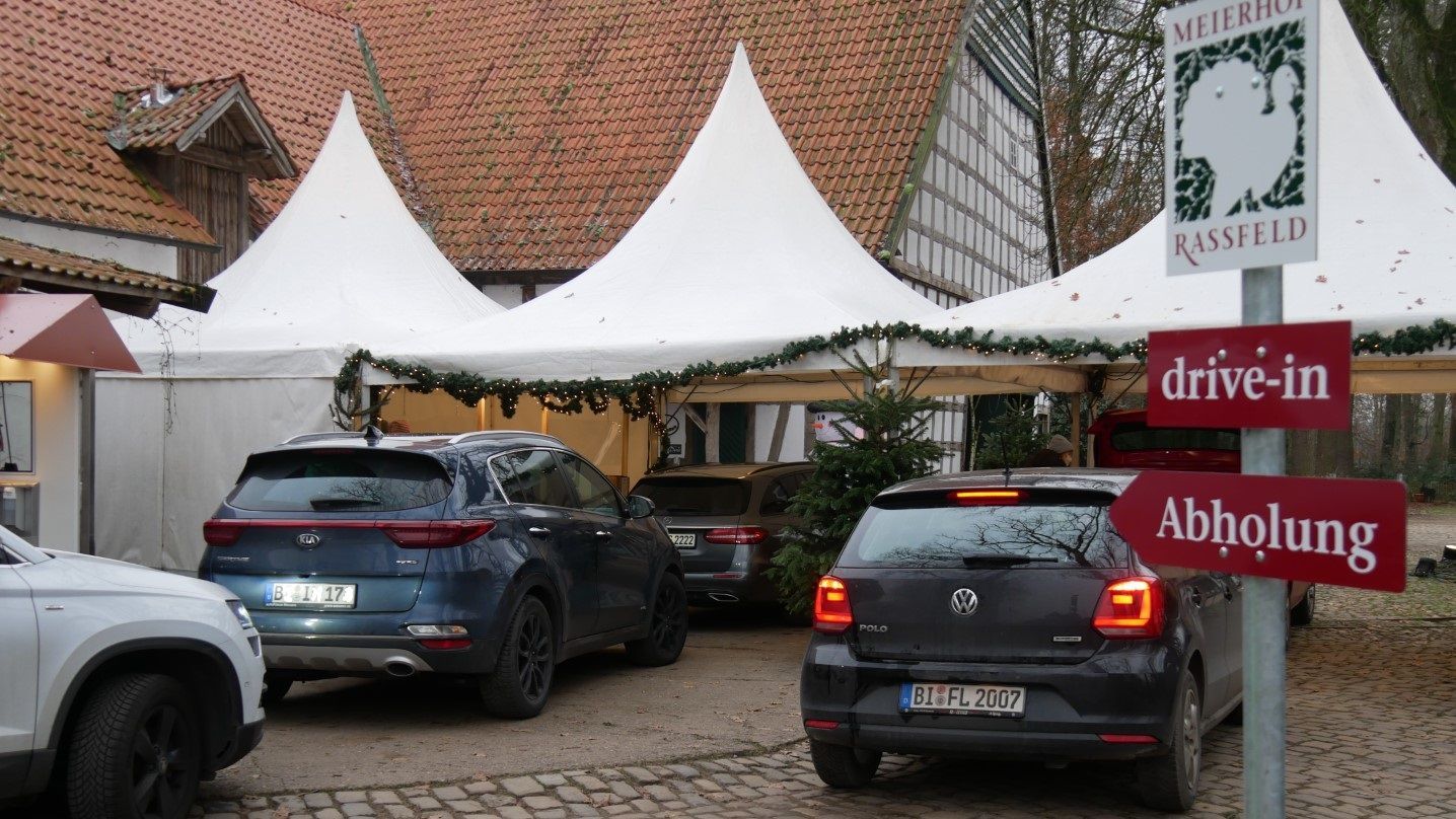 In den Tagen vor WEIHNACHTEN erwartet Sie unser meierhof-drive-in. Ganz bequem holen Sie Ihre Bestellung mit dem Fahrzeug ab. NUR über die Zufahrt von der Holler Strasse kommend, fahren Sie bis zum Hof-Tor wo Sie sich mit Ihrem ABHOLSCHEIN anmelden.